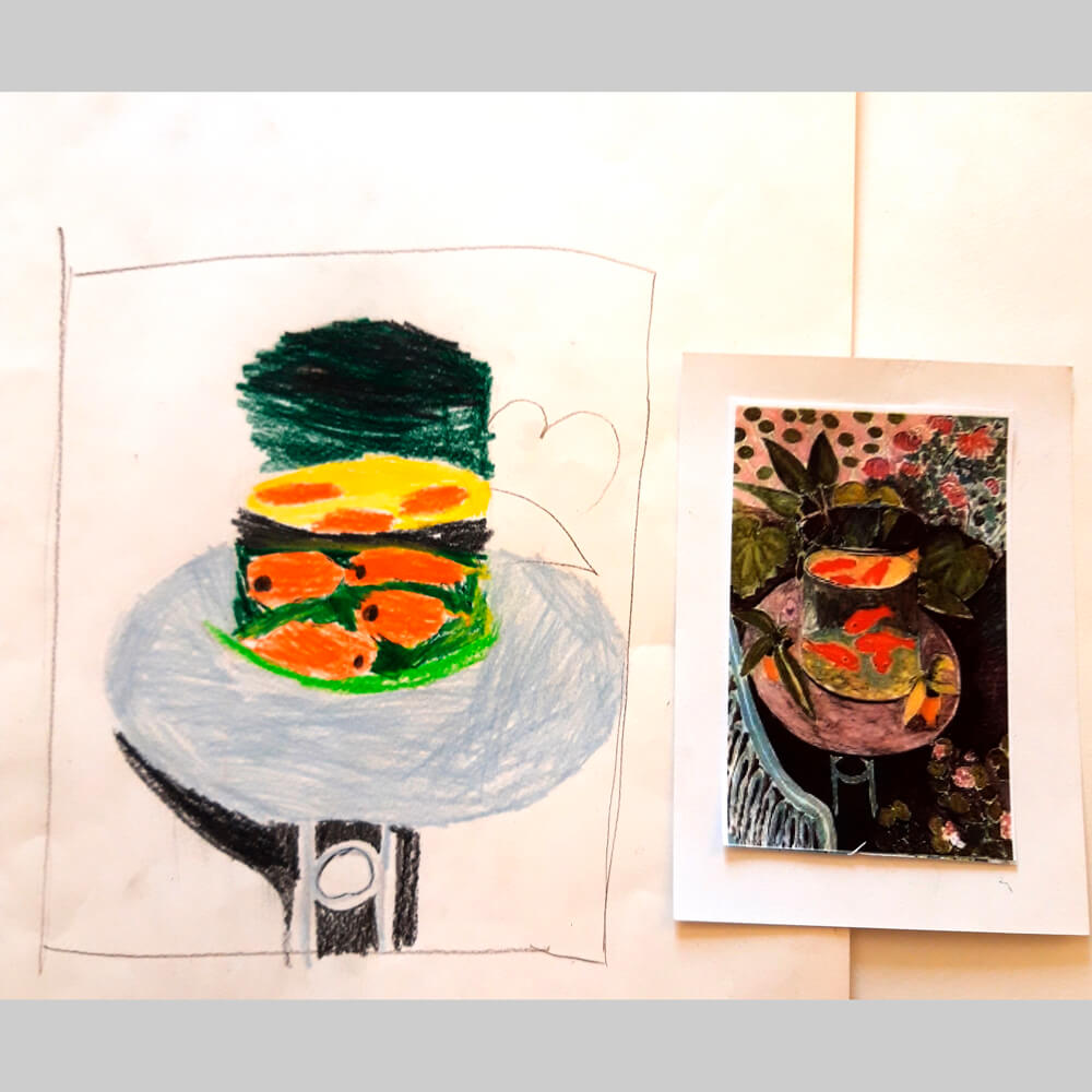 Nicht das Abmalen ist Ziel, sondern das detektivische Nachspüren von Gegenständen, Mustern, Farben und Formen, die Matisse malte. Es ist immer wieder erstaunlich, wie eigenwillig und doch stimmig die Kinder diese Bilder charakterisieren können.