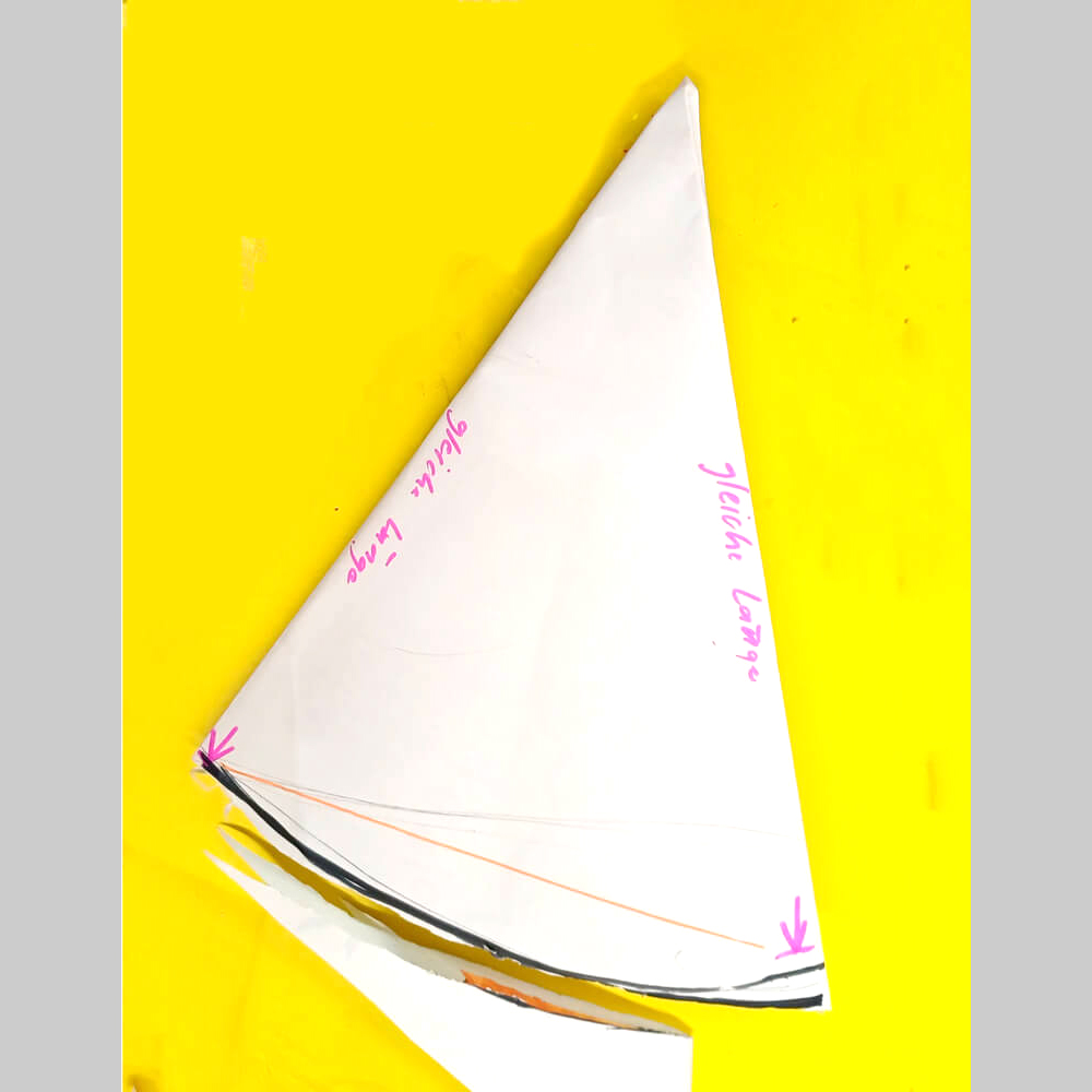 Wenn die Grösse des runden Papiers Zirkel- oder Wähenblechgrösse überschreitet, kann man einen Kreis auch direkt aus einem diagonal mehrfach gefalteten Quadrat schneiden.