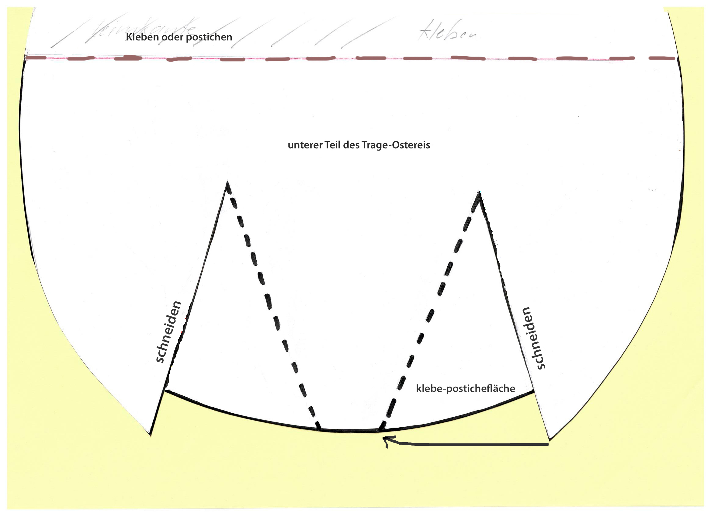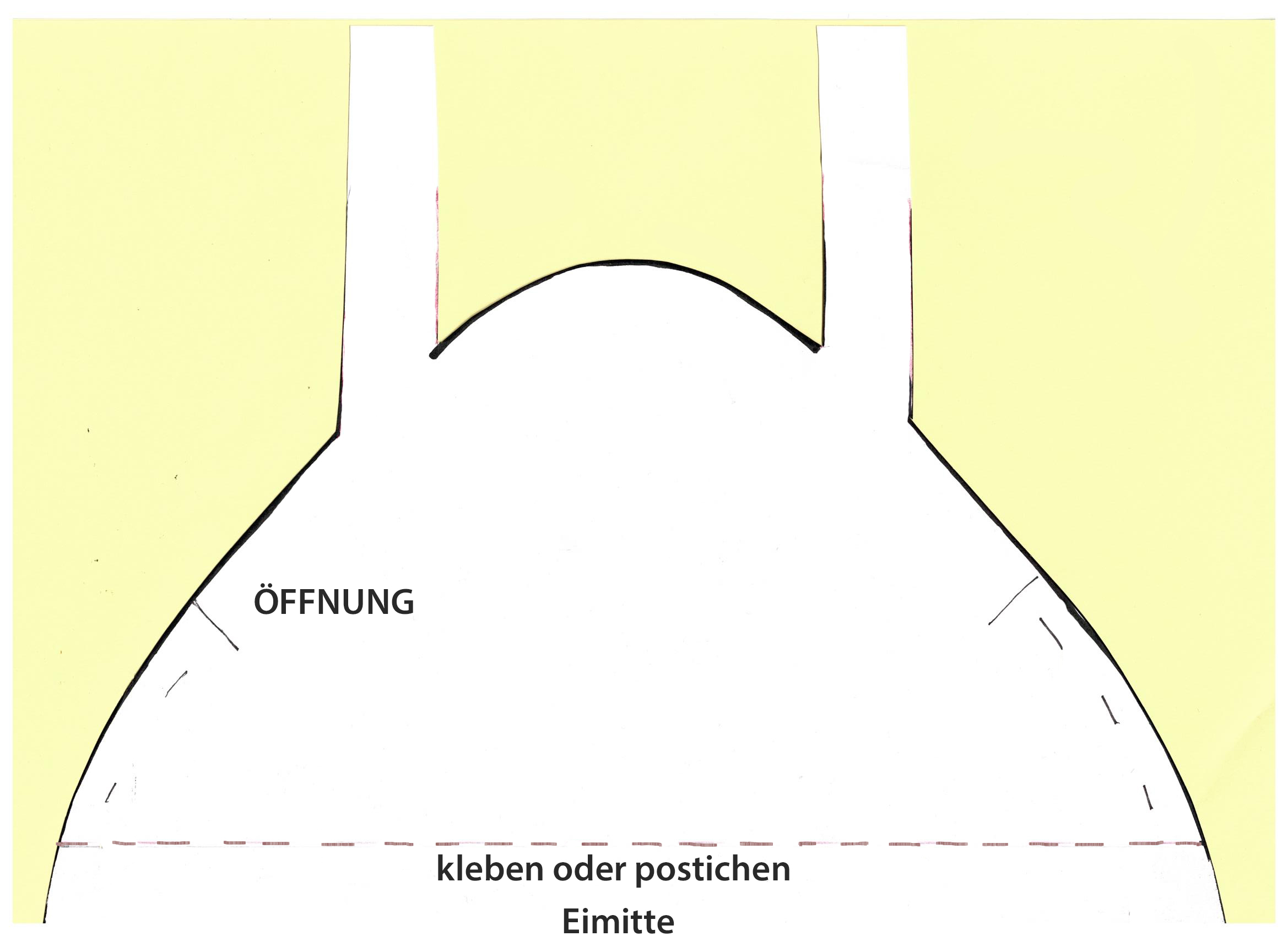 Das in zwei A4 Blättern ausgedruckte Muster ,PDF, ausdrucken und zu einem Eimuster zusammentakkern oder kleben.